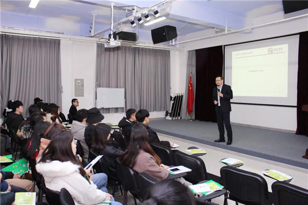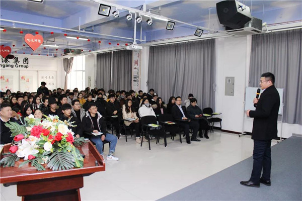 乾港集團美博士環(huán)保總經(jīng)理常凱??偅瑸樵谧膸熒鷤兘庾x了大綠色環(huán)保家居、室內(nèi)污染物治理技術(shù)、方式方法及產(chǎn)品介紹等相關(guān)空凈治理知識;秦皇島新型材料科技有限公司總經(jīng)理李勇劍李總則為在座師生帶來了綠色材料研發(fā)及生產(chǎn)使用工藝等內(nèi)墻環(huán)保壁材方面的知識。